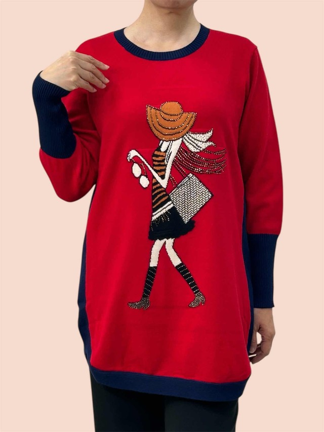 存在感のある女性柄のジャガードが印象的なニットチュニック。 SALE&今だけ限定! 〈税込 5,489円〉→〈税込 3,300円〉 2/22(日)まで送料無料 ※一部配送不可地域がございます。 【サイズ】(M〜L) 着丈79cm 身幅50cm 肩幅39.5cm 袖丈56cm アームホール22.5cm 袖口幅8cm 裾幅52cm 【カラー】 アカ ネイビー グレー 【素材】 レーヨン50% ポリエステル30% ナイロン20% ※商品画像はできる限り実物の色に近づけるよう加工しておりますが、お客様のデバイス環境等により色差がある場合が御座います。予めご了承下さい。 ※サイズの測り方により1〜3cm程誤差がある場合があります。 ※こちらの商品は店頭と在庫を共有しています。こちらでお買い求め頂いても、店頭で完売している場合はご注文をキャンセルとさせて頂く場合が御座います。予めご了承ください。 商品No.182-223-2375