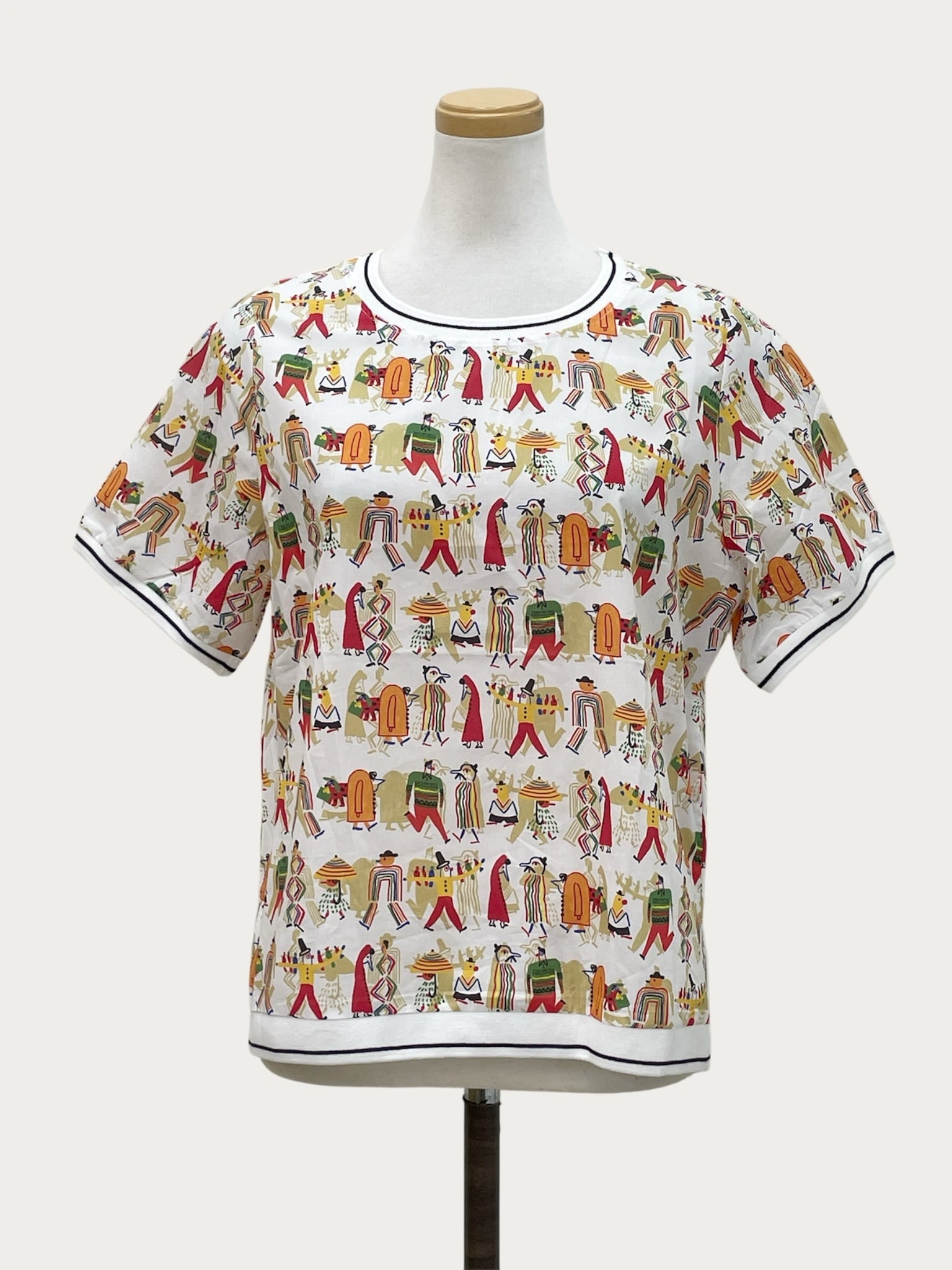 リブニット切替POPプリントTブラウス