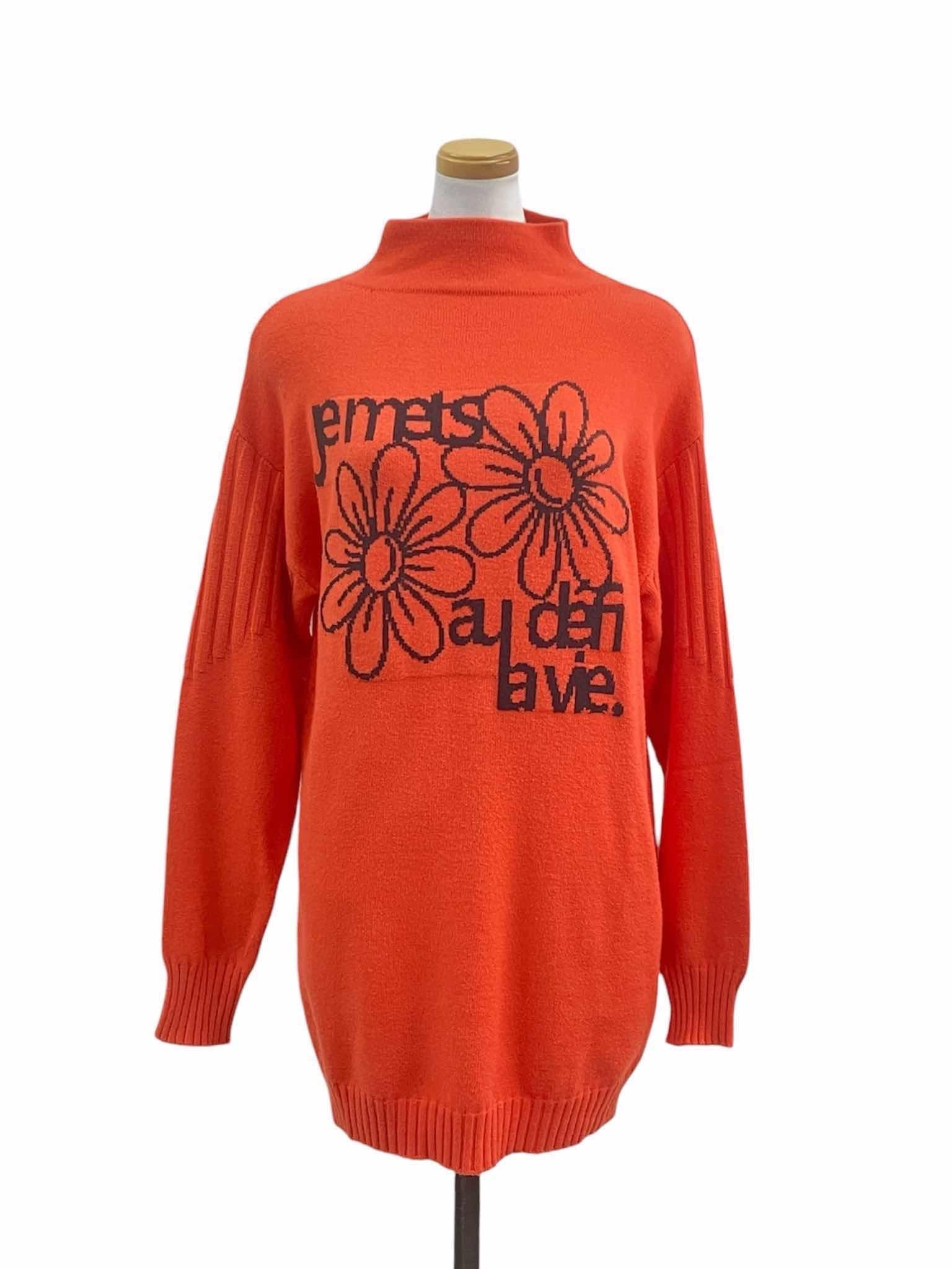 花柄と英字の組み合わせが大人可愛い、ジャガード編みニットチュニック。