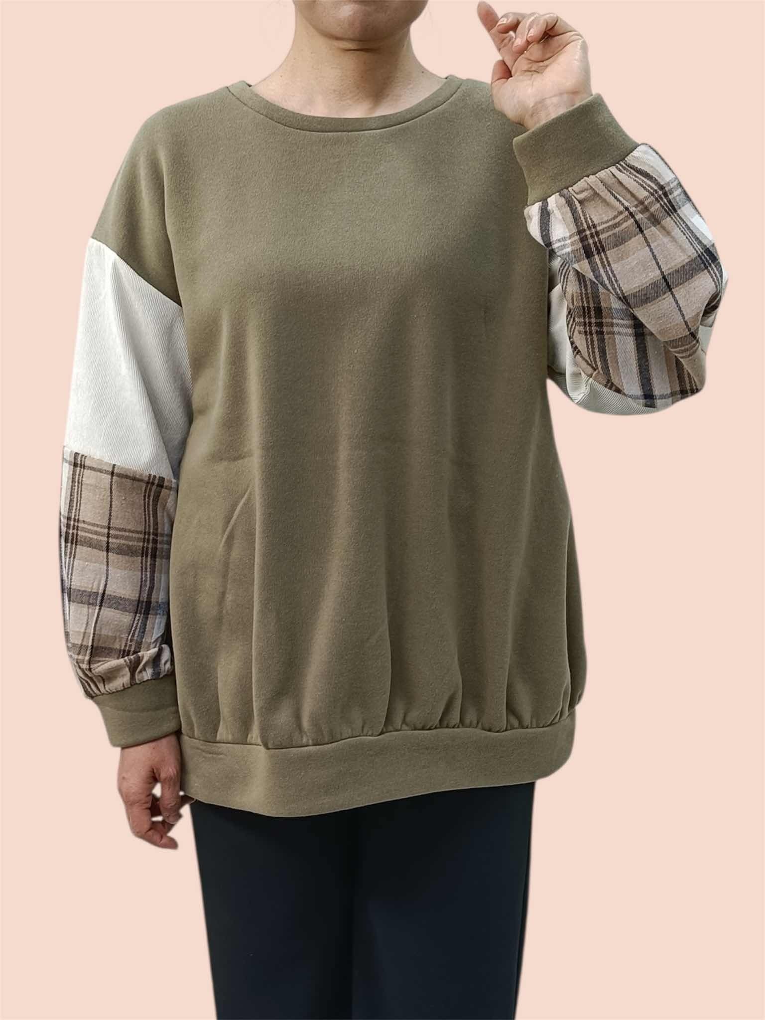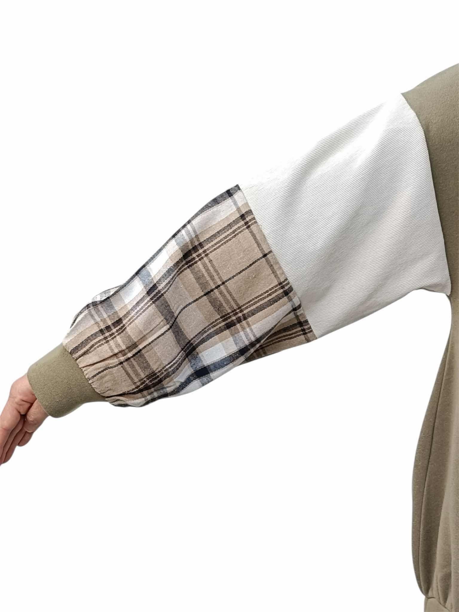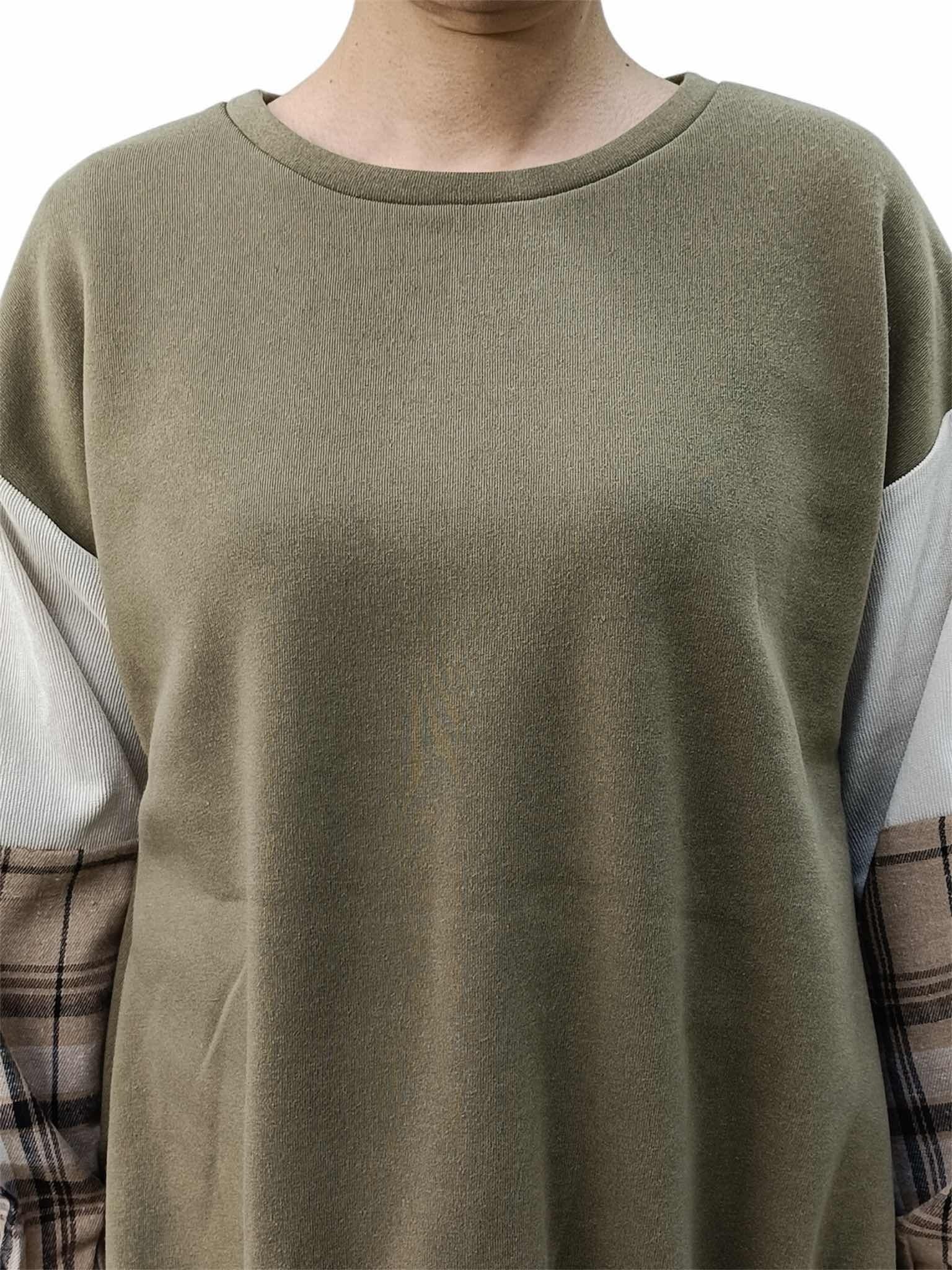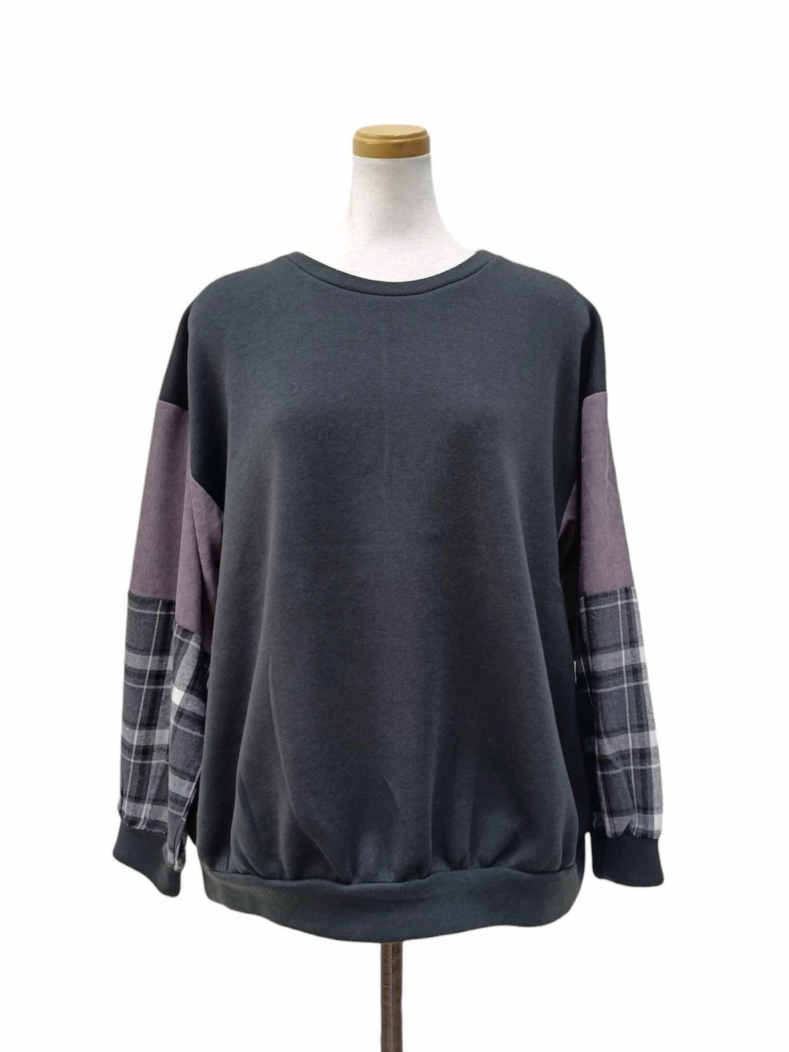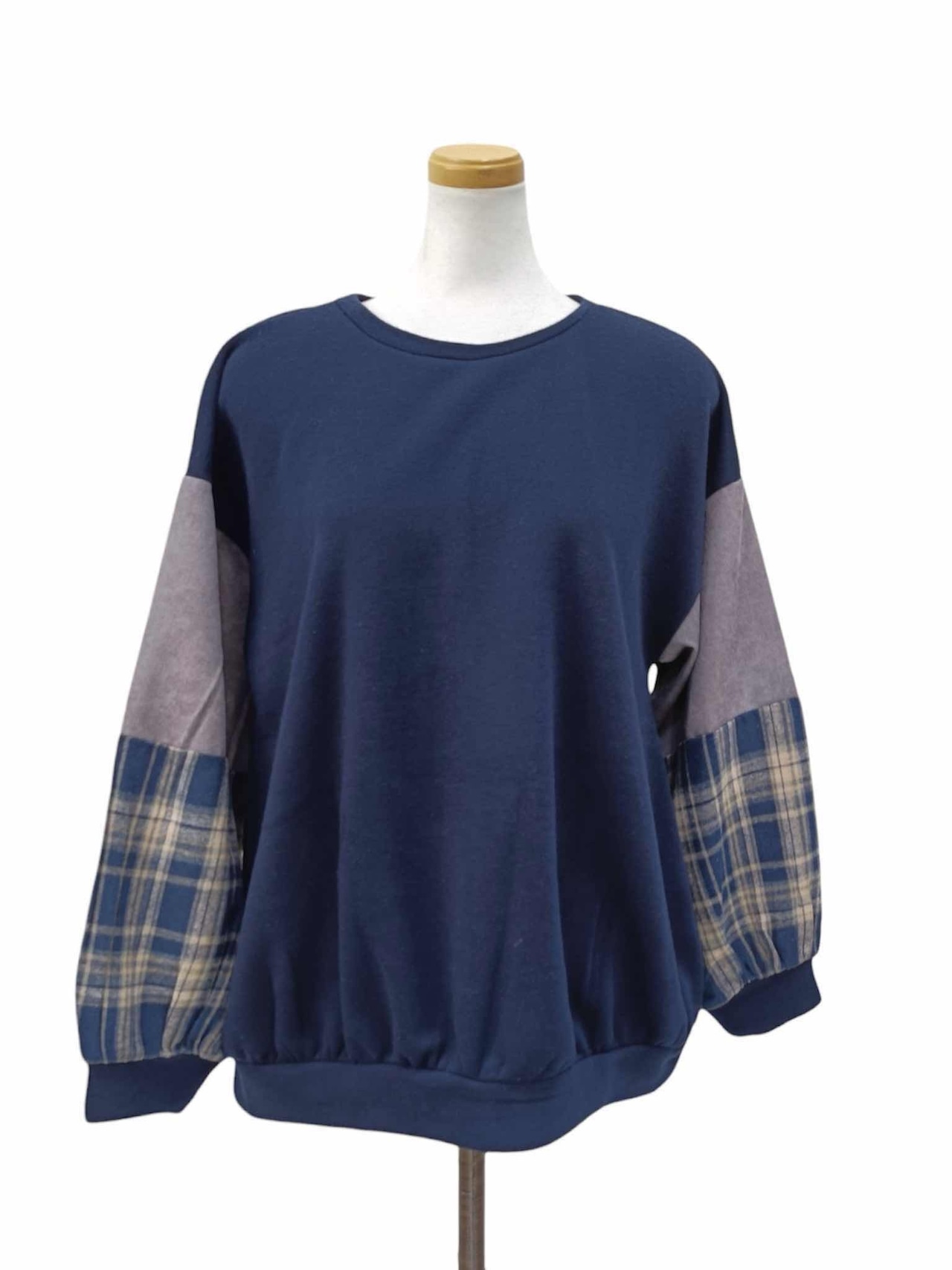 袖チェック使い切替プルオーバー