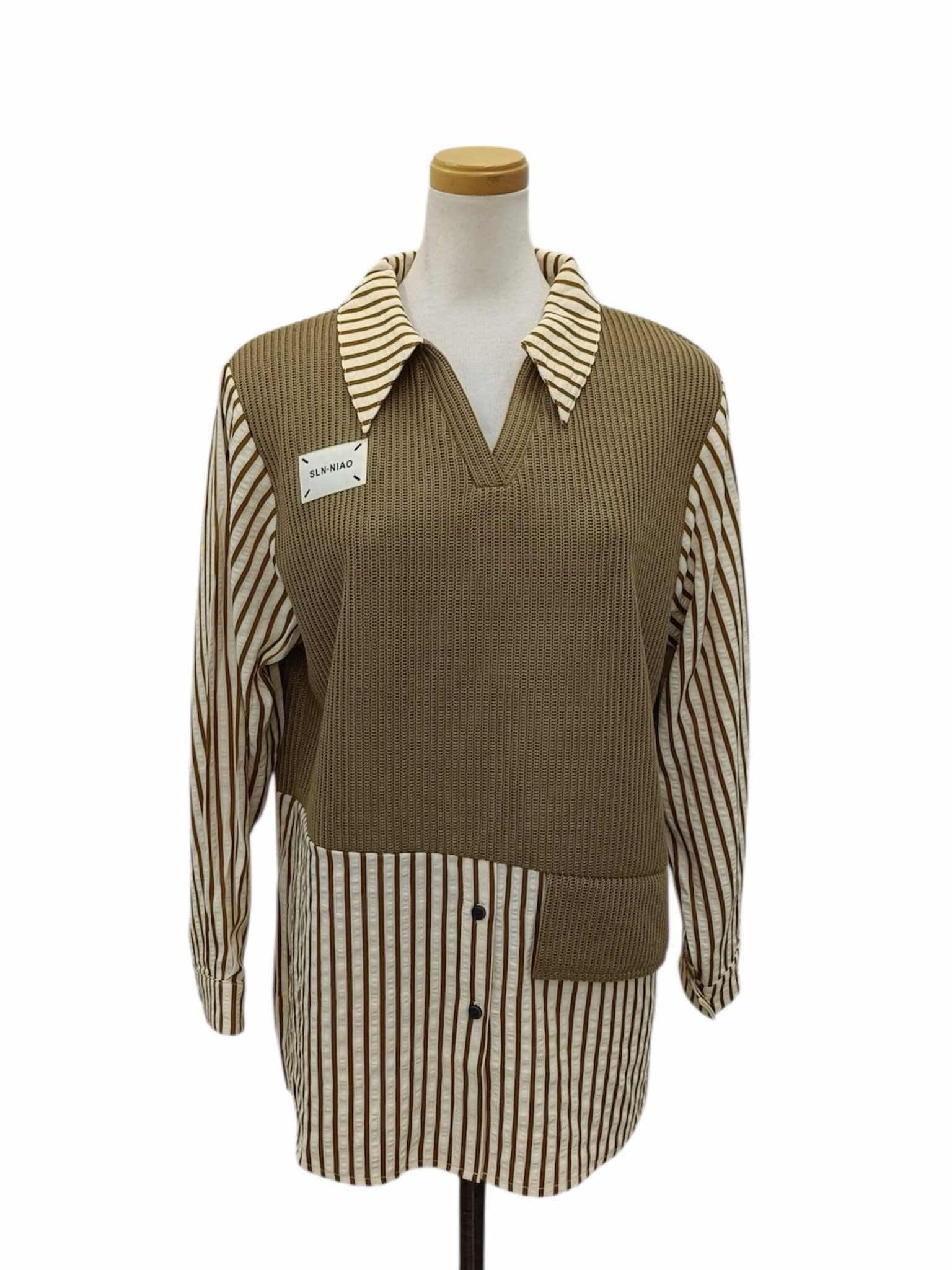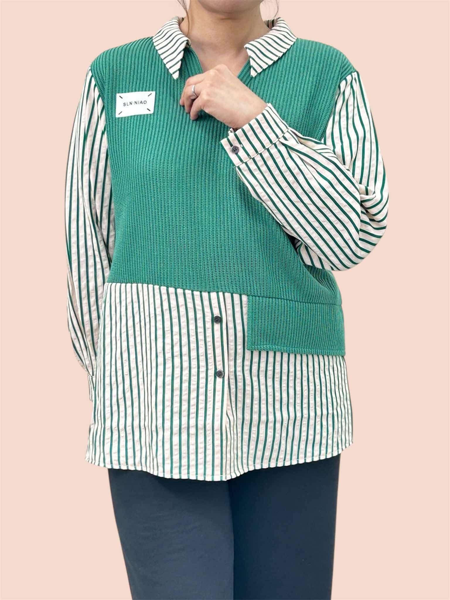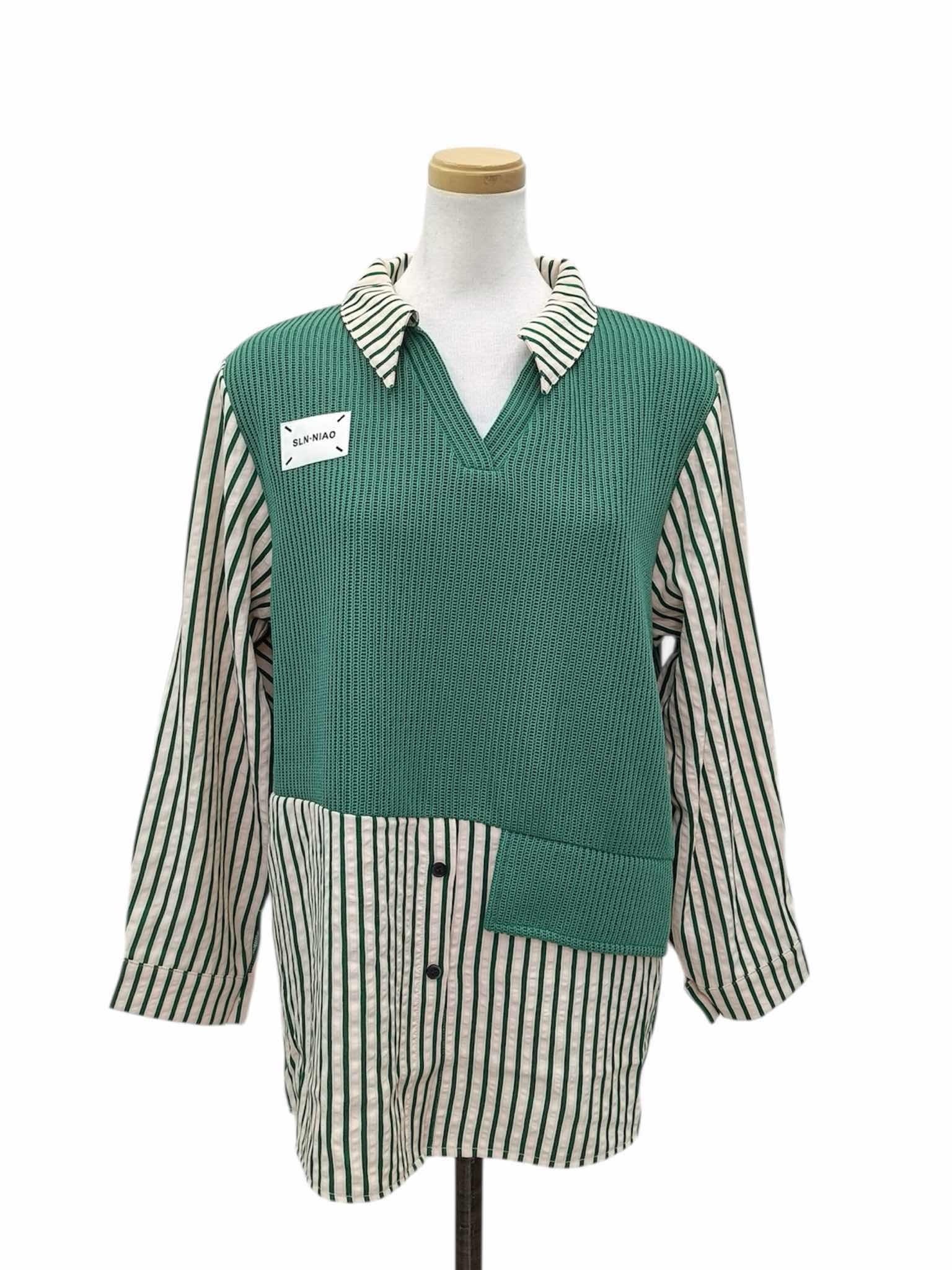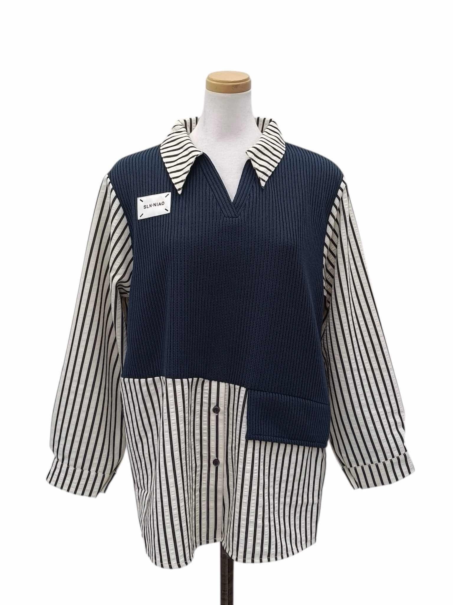シャツの上にベストを重ねたような、トレンドのレイヤードスタイルがこれ一着で完成!
