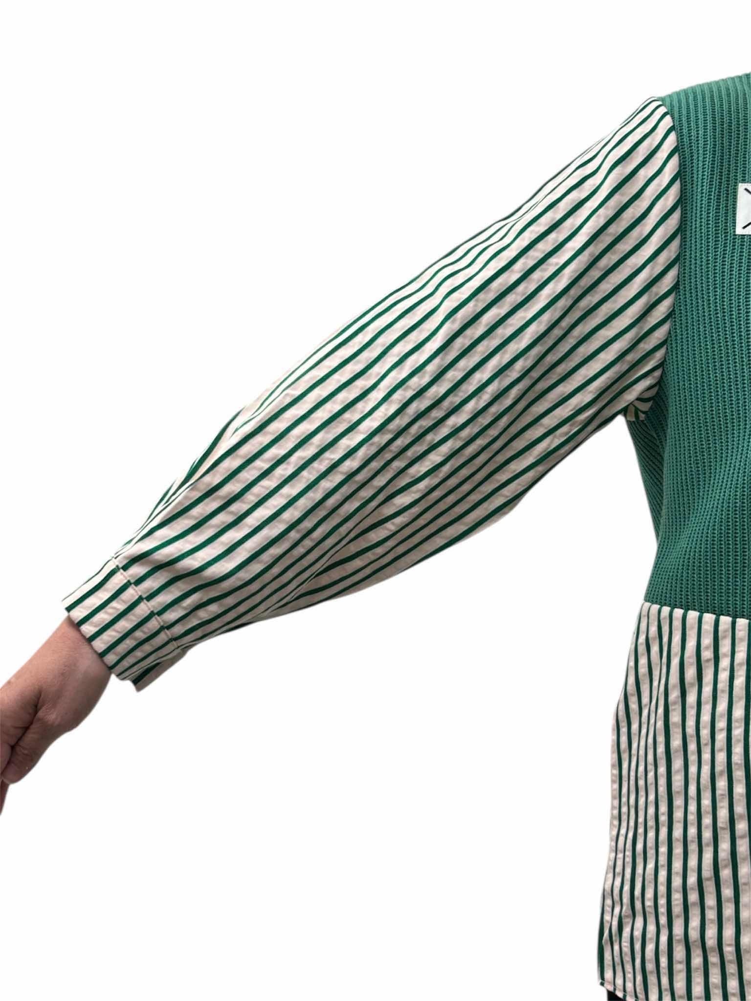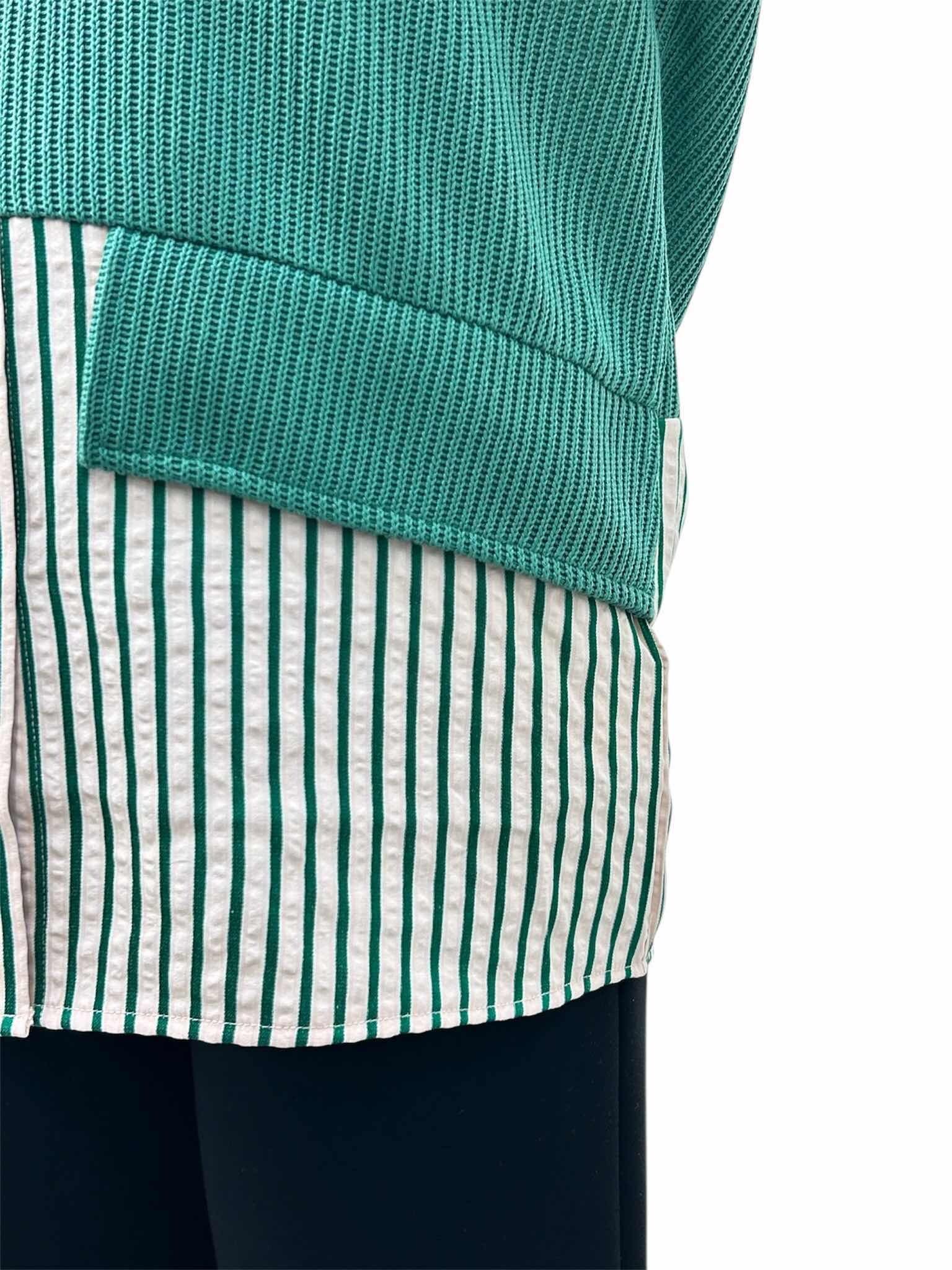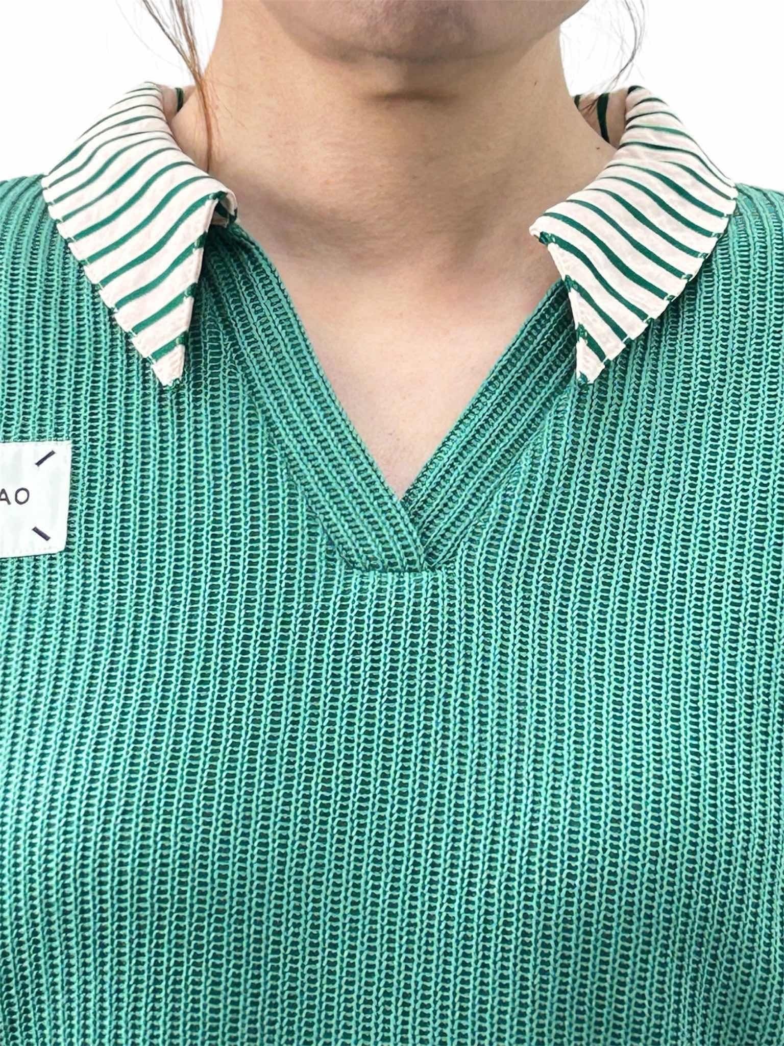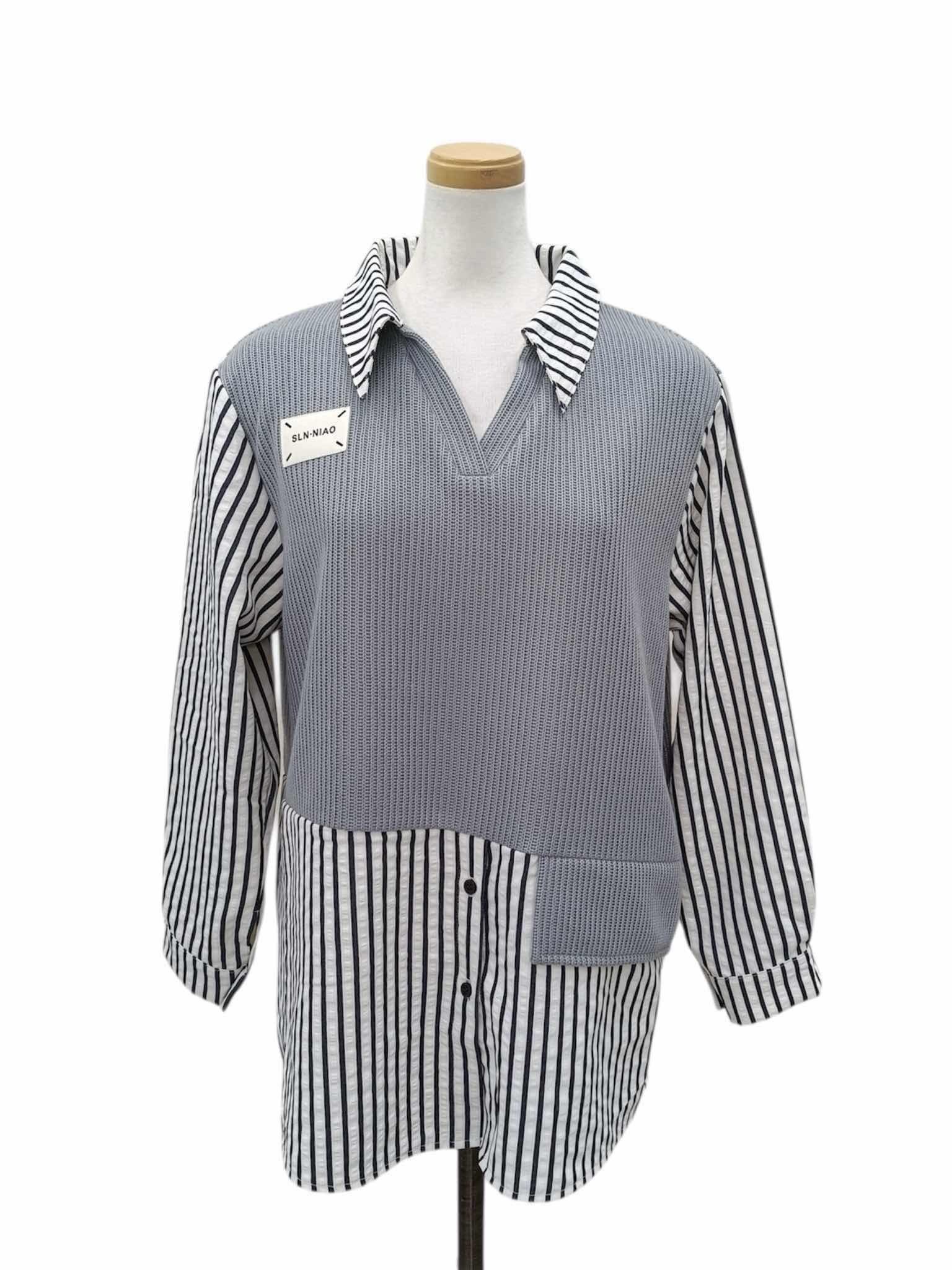 シャツの上にベストを重ねたような、トレンドのレイヤードスタイルがこれ一着で完成!