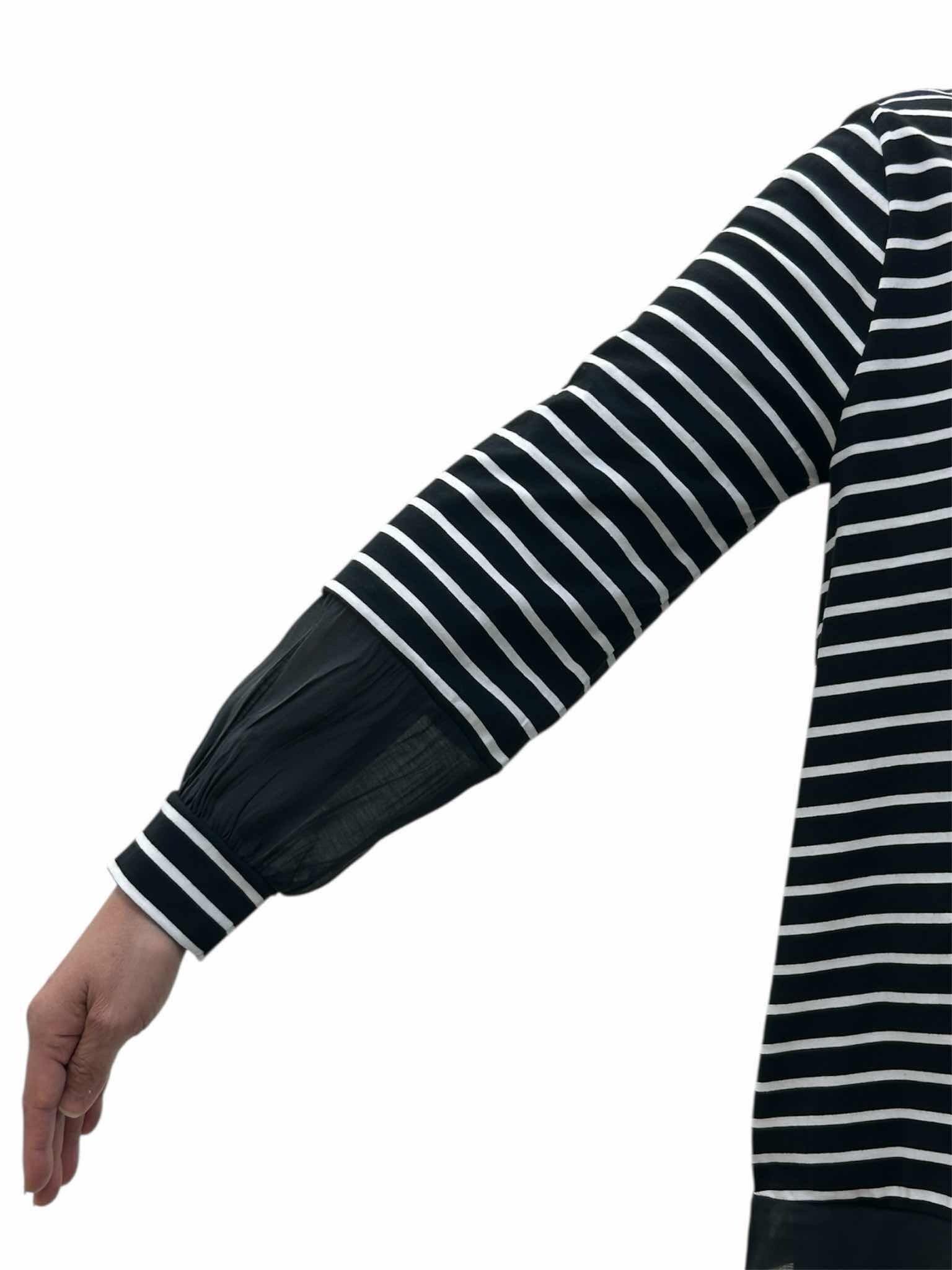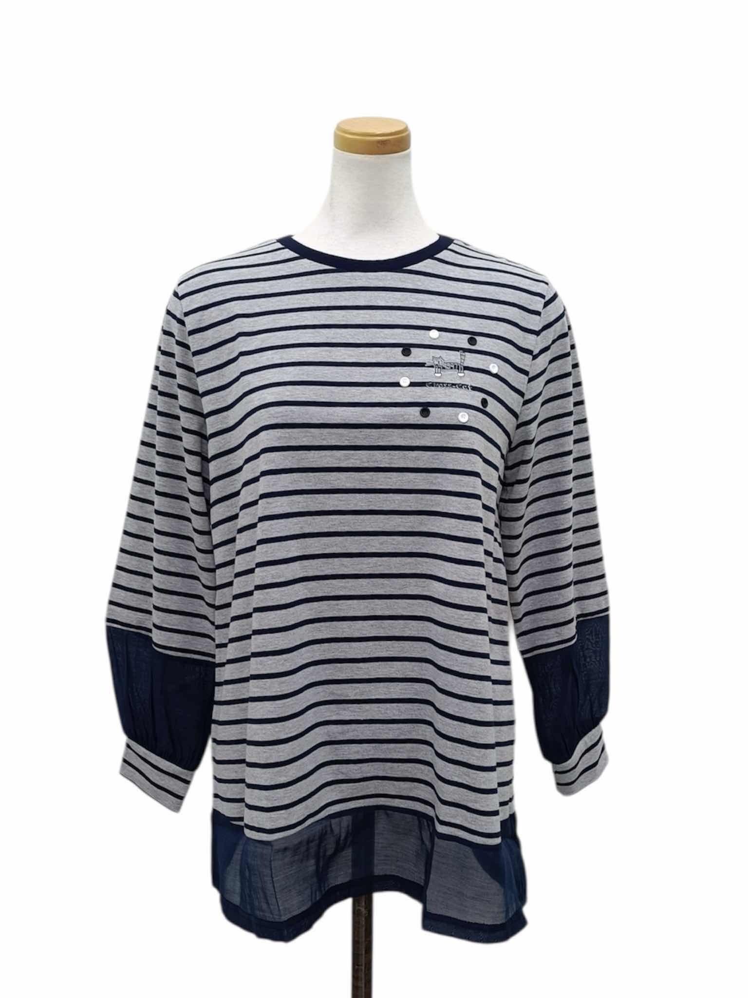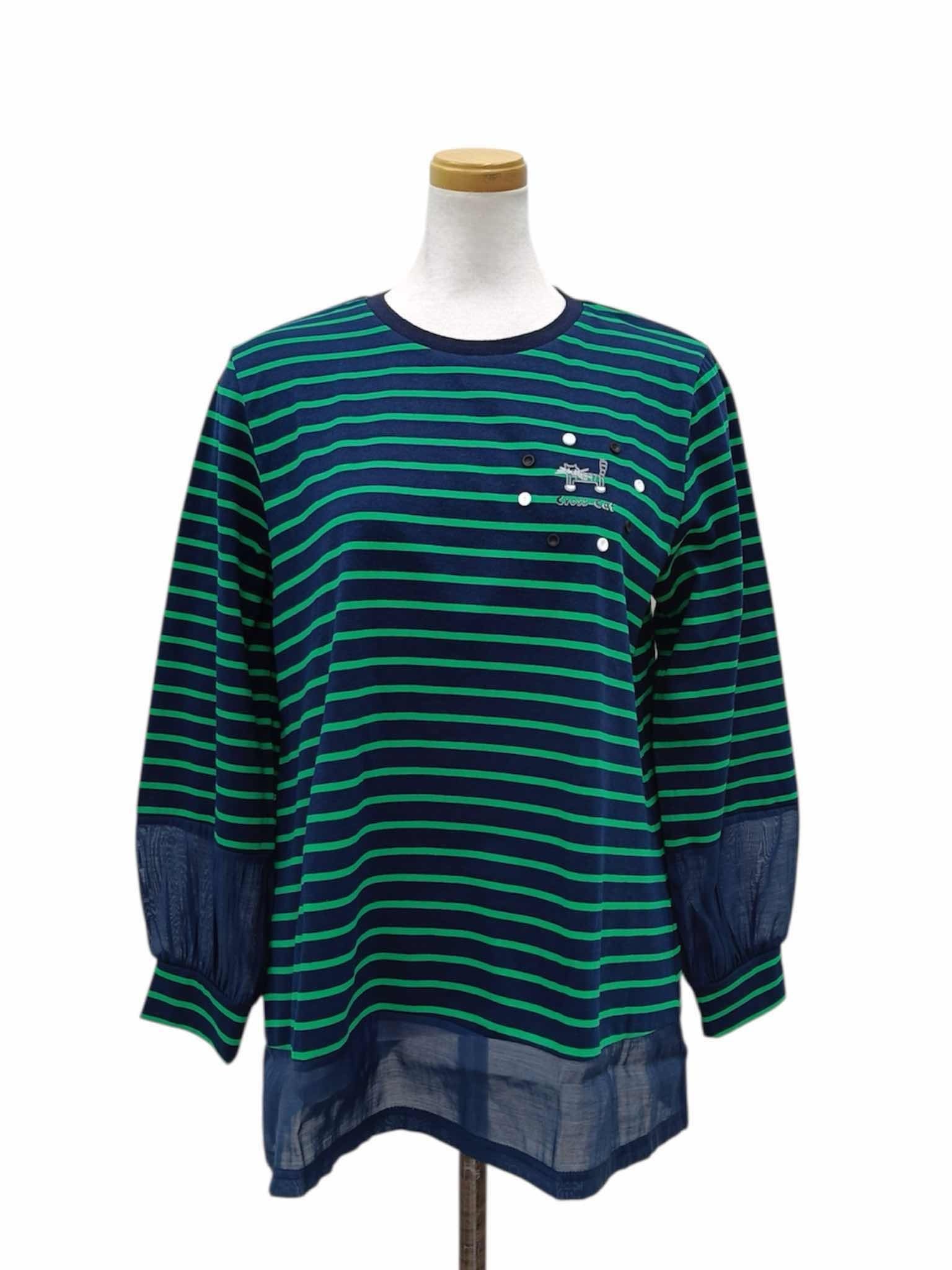 袖口と裾をシアー素材に切り替えることで、重くなりがちなボーダーに抜け感をプラス。