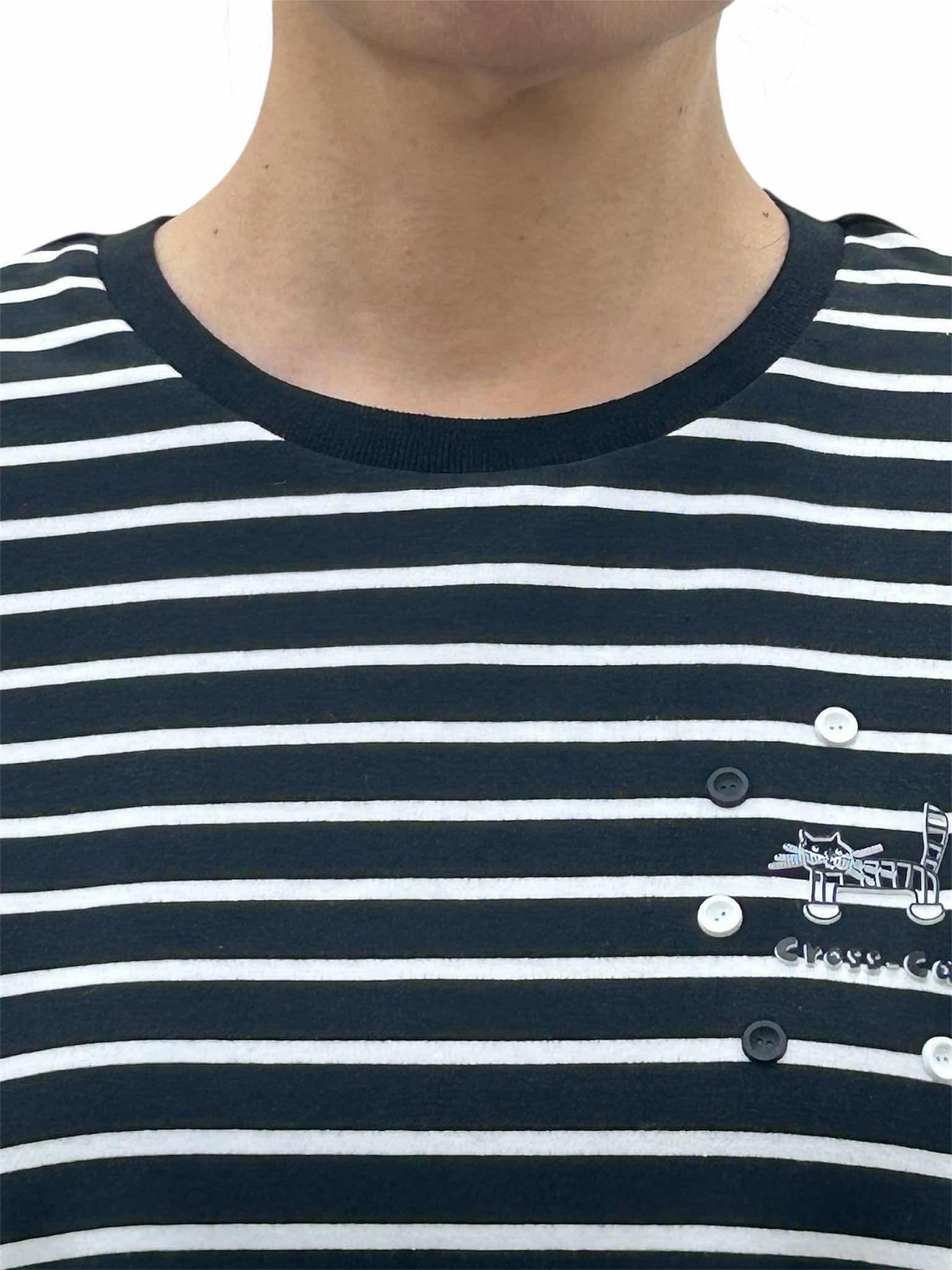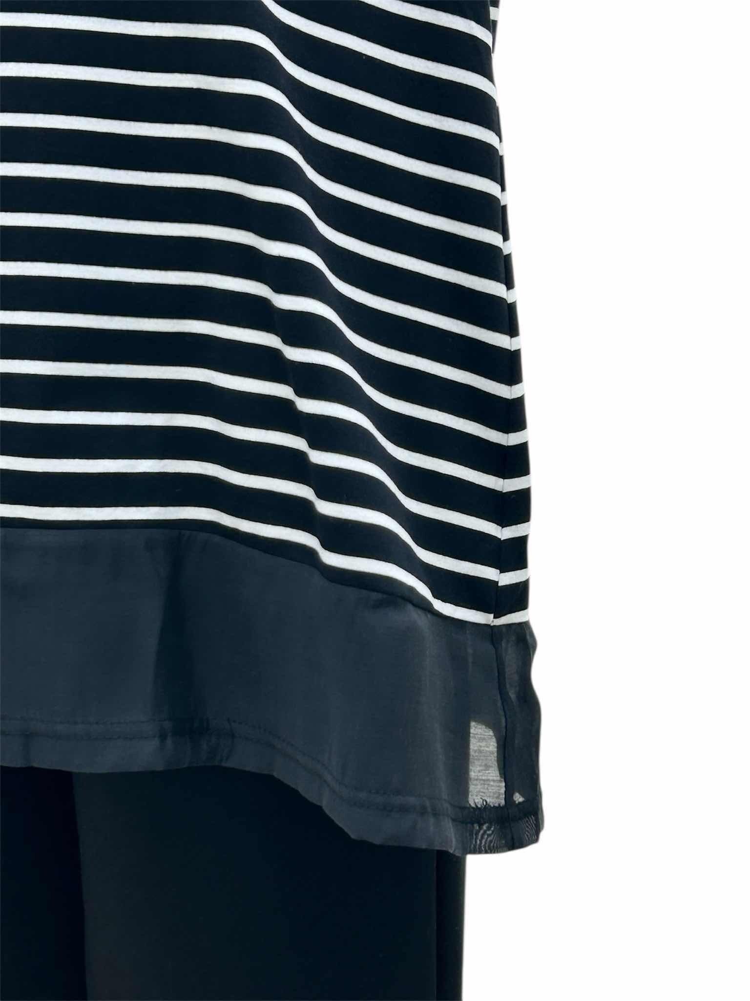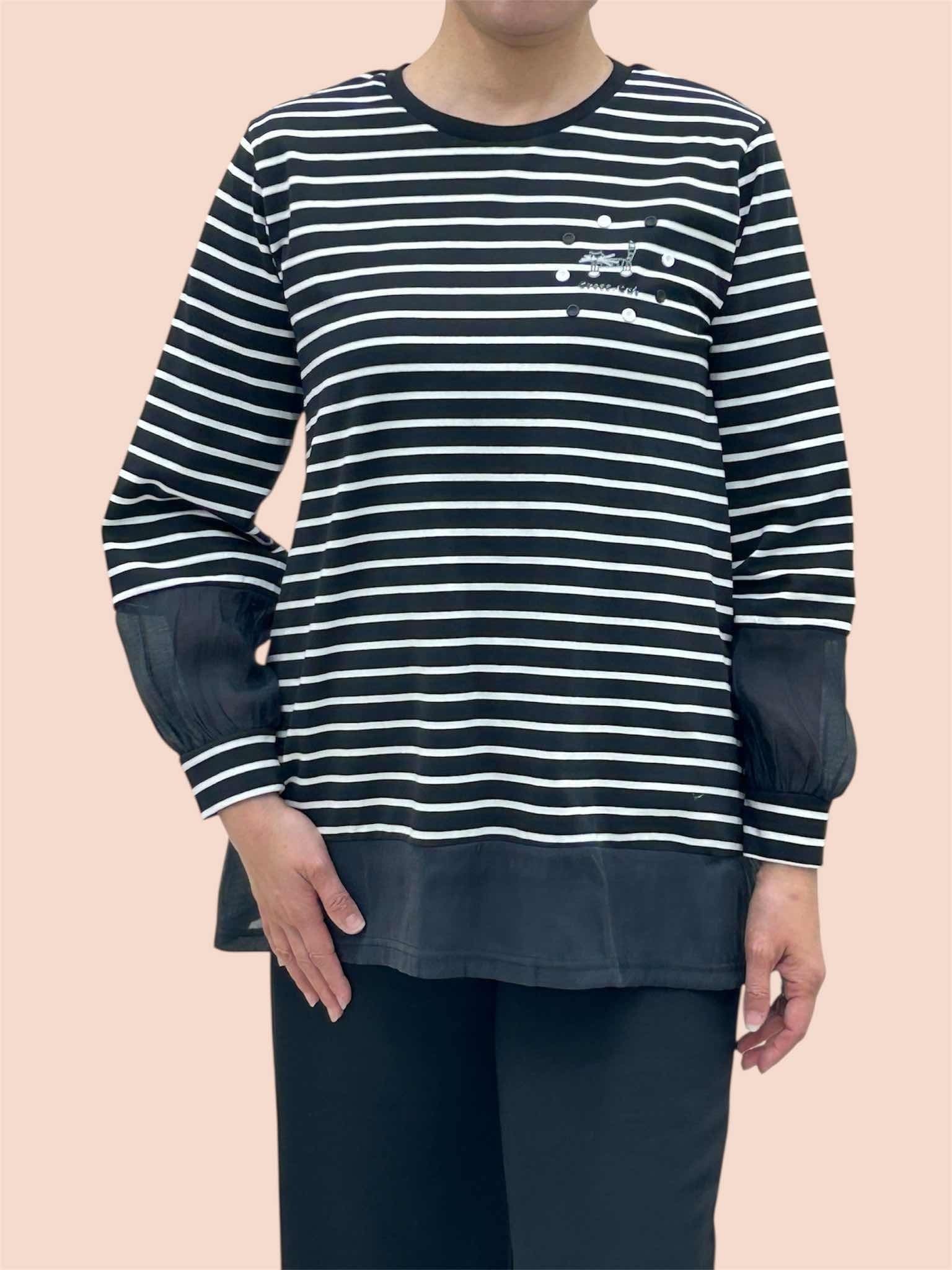 袖口と裾をシアー素材に切り替えることで、重くなりがちなボーダーに抜け感をプラス。