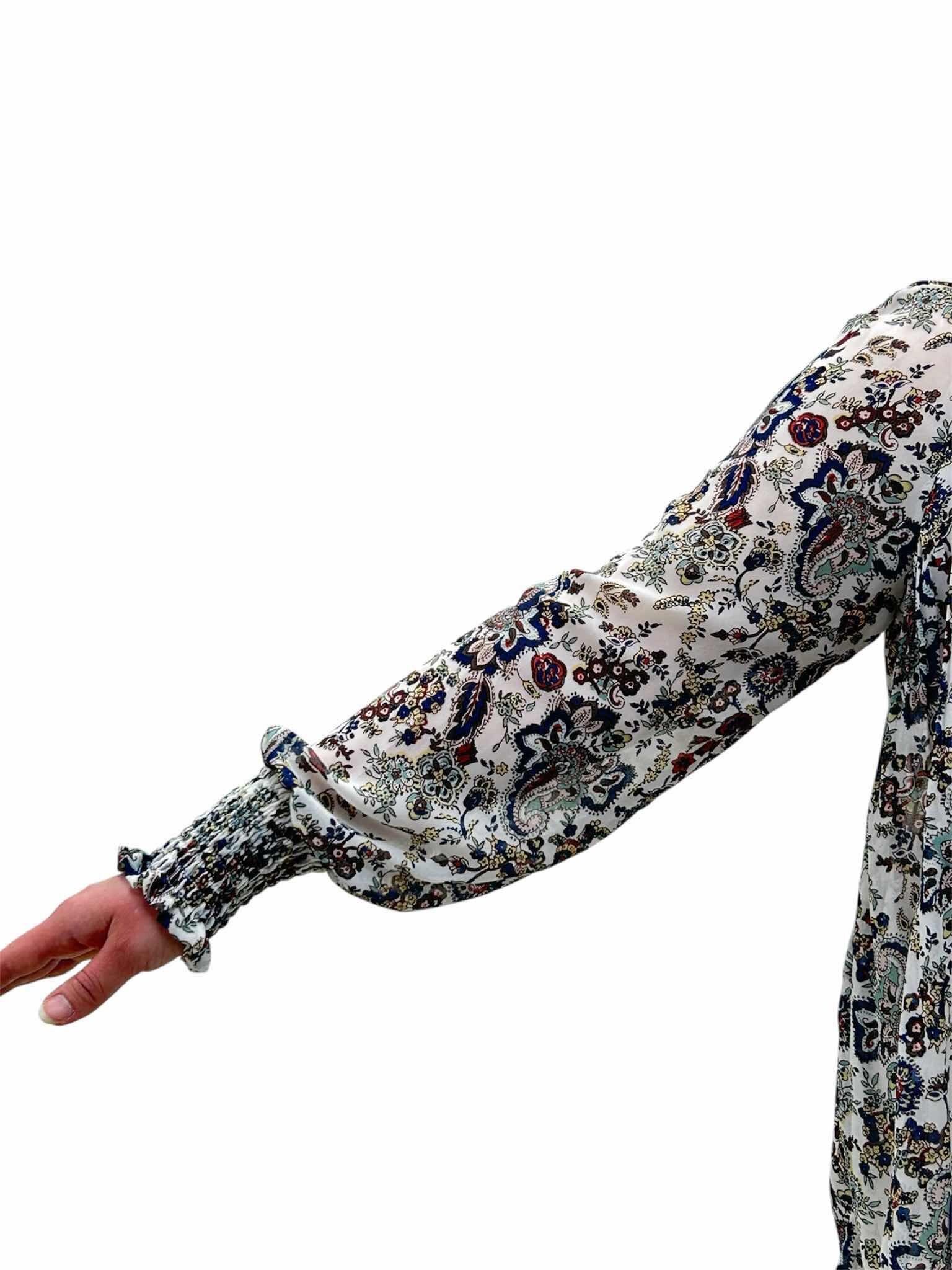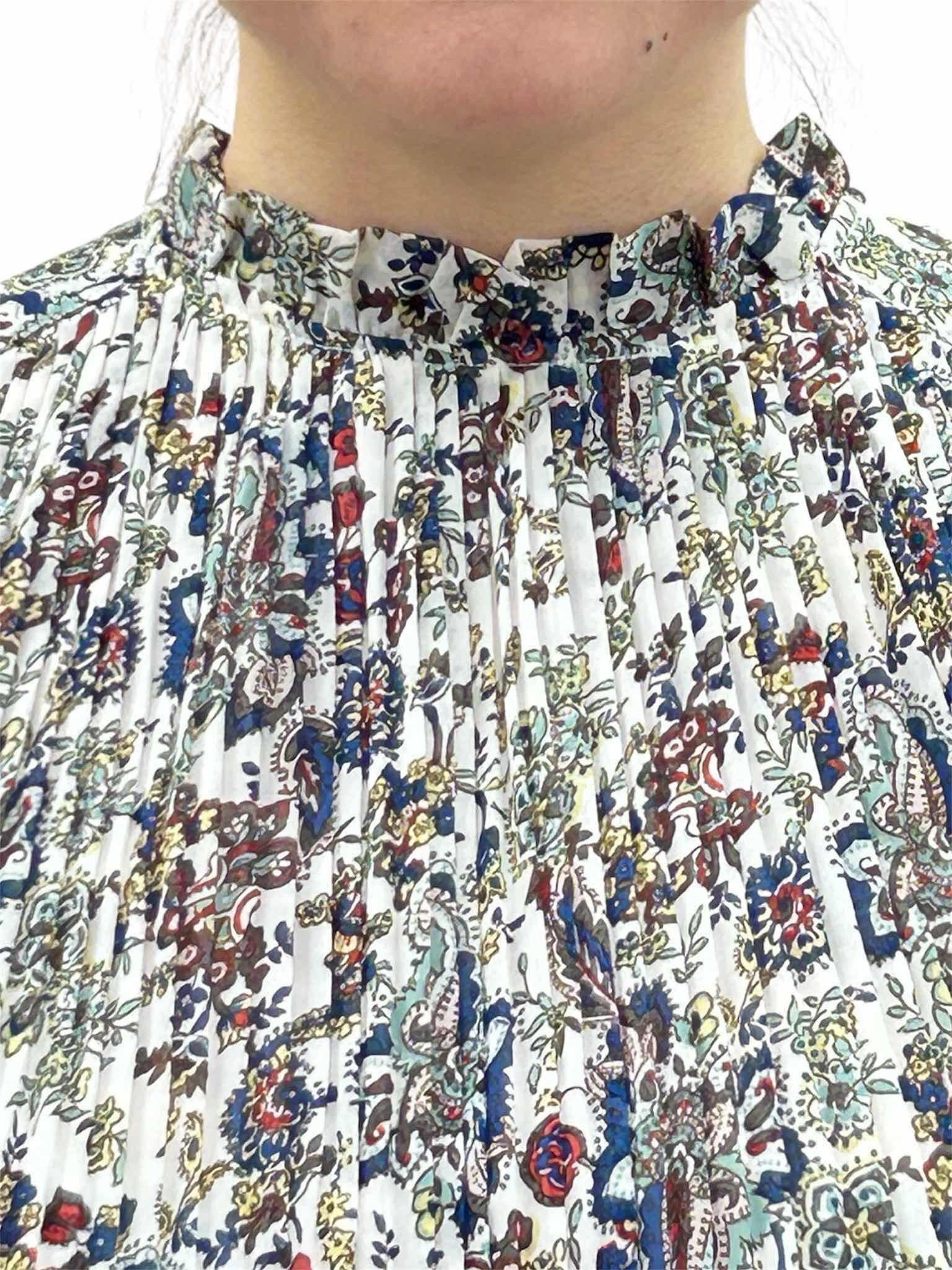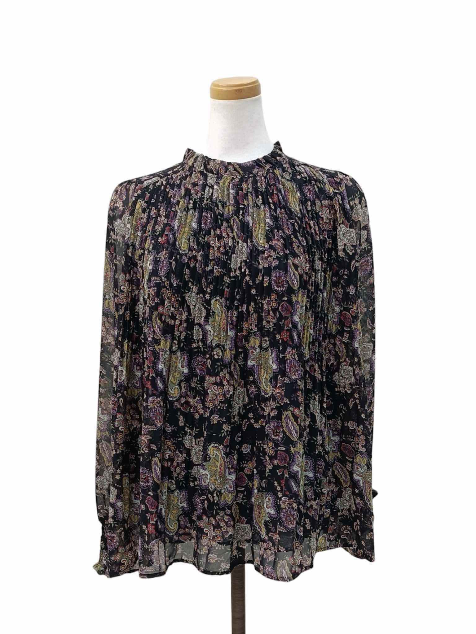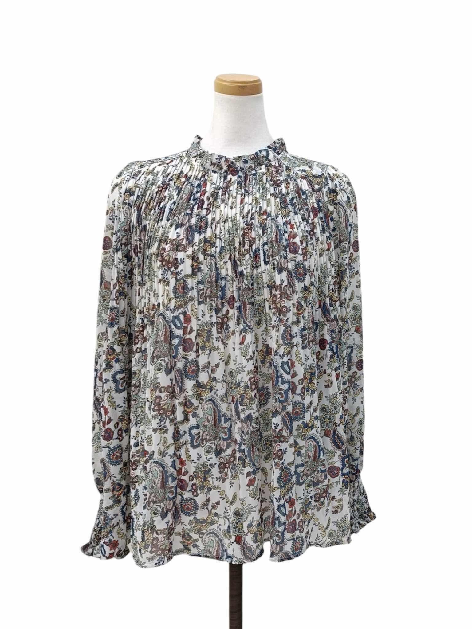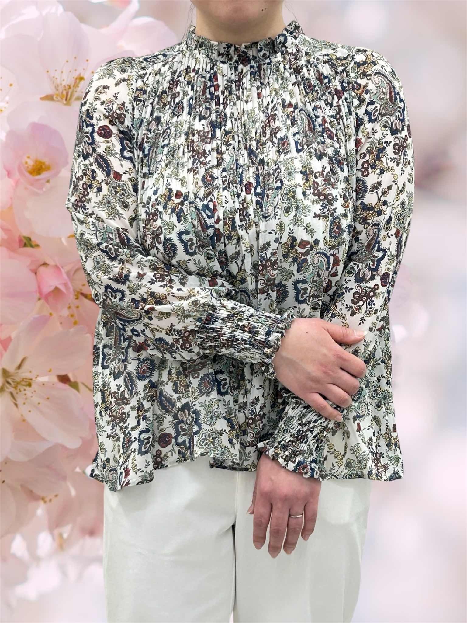 軽やかなシフォン素材に、クラシカルなペイズリー柄をのせたエレガントなブラウス。